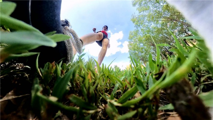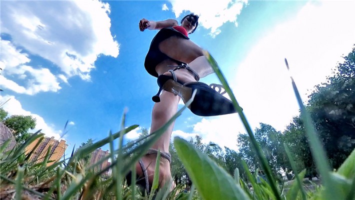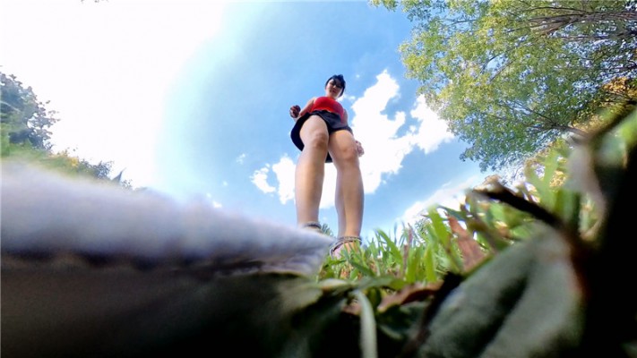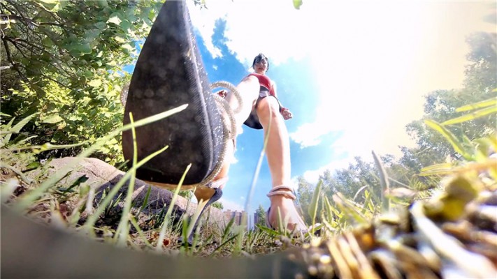 一个偷窥狂使用特技把自己变成一个小虫子,在公园的草地上伺机而动打算偷窥女孩,发现猎物后果断爬过去,在女孩下方偷窥裸足,还趴进鞋里吃残留在鞋里的脚泥。被发现后想逃跑,女孩追了过去一脚踩住成了俘虏。女孩拿着虫子一样大的小人各种玩弄,小人几次试图逃跑 都被追上来一脚踩住,小人被折磨的筋疲力尽,也逃不掉了,被女孩装进了袜子里,再把脚伸进袜子里蹂躏,把小人蹂躏的体无完肤,最后女孩要带小人回家继续玩,问小人愿不愿意,小人不想被玩弄死,坚决不从,失望的女孩非常生气,把小人塞进臭袜子里,一脚踢飞,然后最后去高高太脚用高跟鞋跺死。