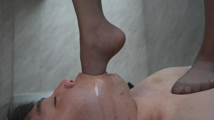 寒夕一直全体重踩在狗子的胸口上,接下来就开始下道了,大大的脚一点点怼进狗的嘴里,狗的整个口腔瞬间撑到畸形,接下来就是各种姿势往狗嘴里插捅,正面插,反面插,百斤的体重站在胸口上同时大脚伸进喉咙压着气管,两种无法呼吸让M 此时真的痛不欲生,接下来就是我全场崩溃的时刻了,寒夕换了各种各样的姿势,甚至脱掉丝袜,各个体位粗鲁强暴的深喉 让M 简直快把前天胃里的食物都吐出来,一直吐 一直吐,我就不知道哪来的那么多东西可吐,给我都看吐了, 但是 寒夕主子 没有任何一点抵触,甚至就是故意的清空狗子的身体,这个深喉效果过于残忍,画面狰狞,心理素质强大者推荐观看,顶级刺激视觉神经,但是 轻度接受者,一定慎入。