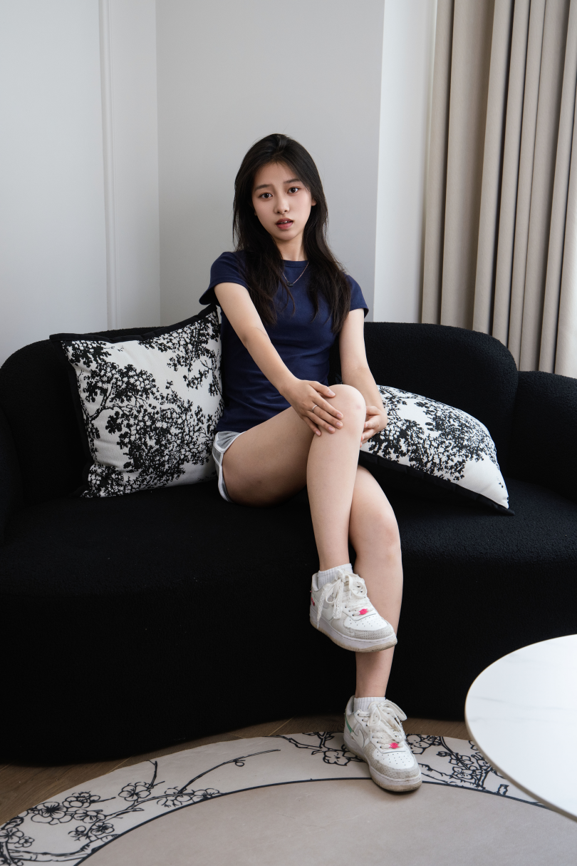 › 足愉心摄影第58期:模特青青(搭配:藏蓝色T恤、灰色短裤、白棉袜、滑板鞋、裸足)