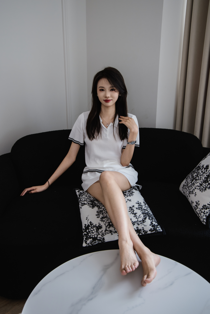 › 足愉心摄影第56期:模特楚然(搭配:白色T恤、白色短裙、滑板鞋、、白棉袜、裸足)