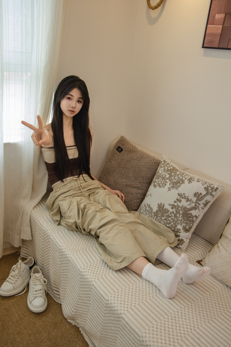 › 足愉心摄影第53期:模特小瑶(搭配:棕色抹胸、工装裤、白棉袜、滑板鞋、裸足)