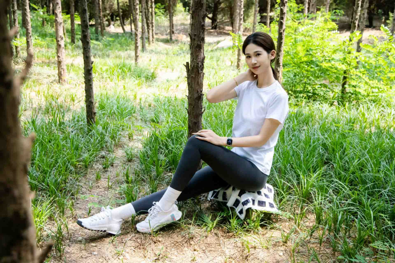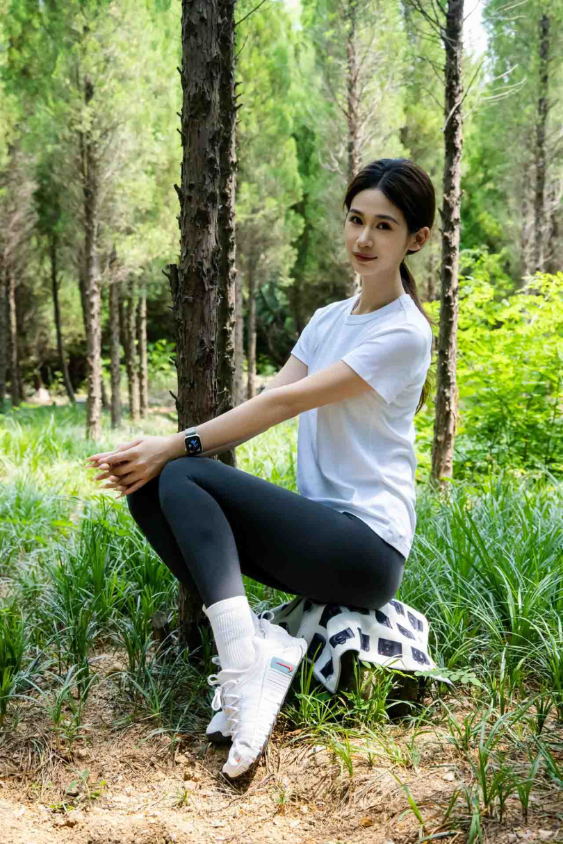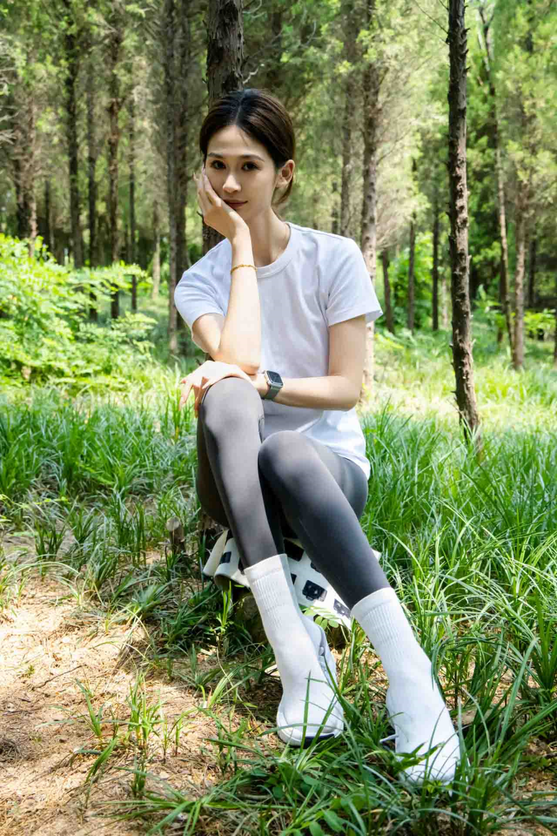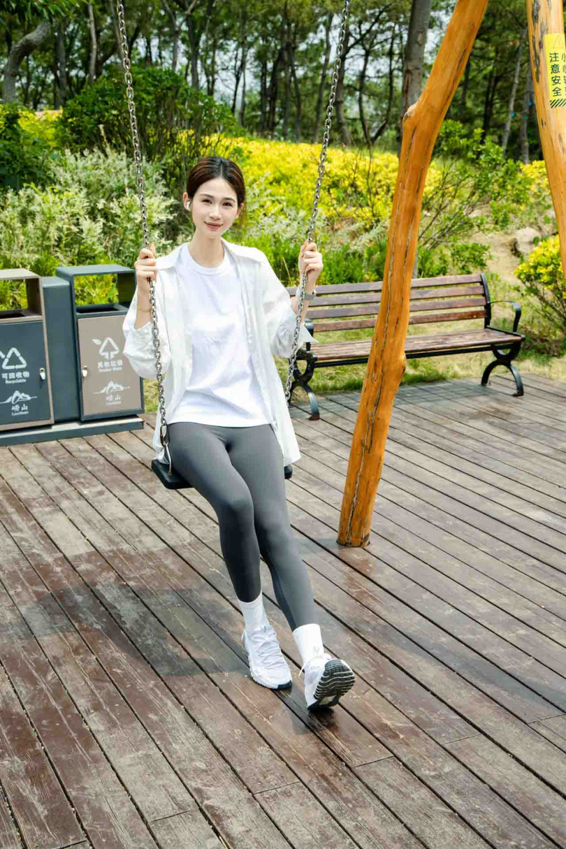 足愉心摄影第38期:模特沐晴(搭配:白T恤、黑色瑜伽裤、白色棉袜、运动鞋)