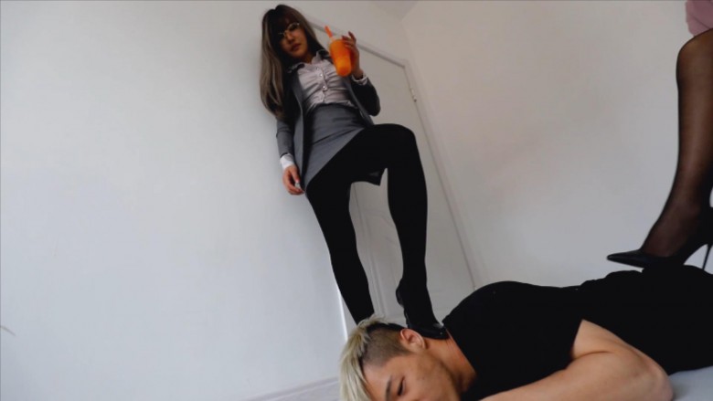 【内容简介】:外卖小哥不小心打翻了送来的饮料,被三个女职员谩骂羞辱,让他舔脏鞋底、舔丝袜脚