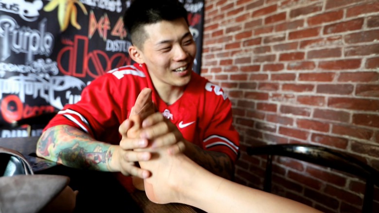 她内心想到:如果我把脚插进她的嘴里, 会不会效果加倍呢,之前只是用舌头舔而已 真希缓缓的把一只脚挪向秋日子的嘴,然后用脚尖把秋日子的嘴撬开 脚尖深深的插进她的嘴里