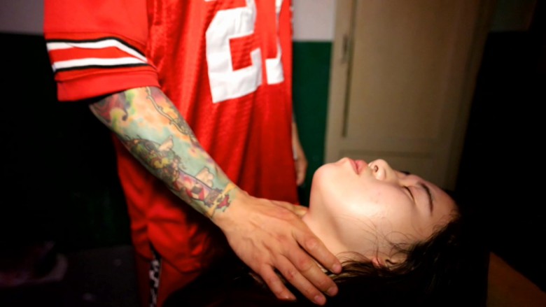 真希用力的往秋日子的嘴里插的 秋日子仍在昏迷中 但痛苦的抽搐