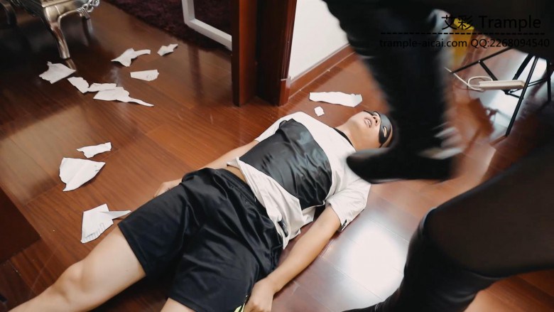 把下属辛苦做的方案摔到地上碾踩,下属用手去护着,却被毫不留情得连手一起跺踩