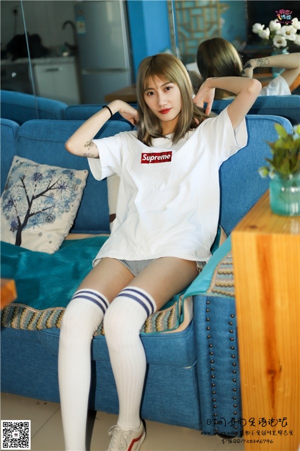 【物恋传媒】酷酷的18岁黑丝少女,黑丝与白长筒袜的碰撞