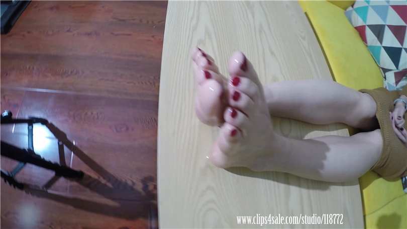 › 【A&F】【双机位】大只美女脚底抹油红甲油美足脚底