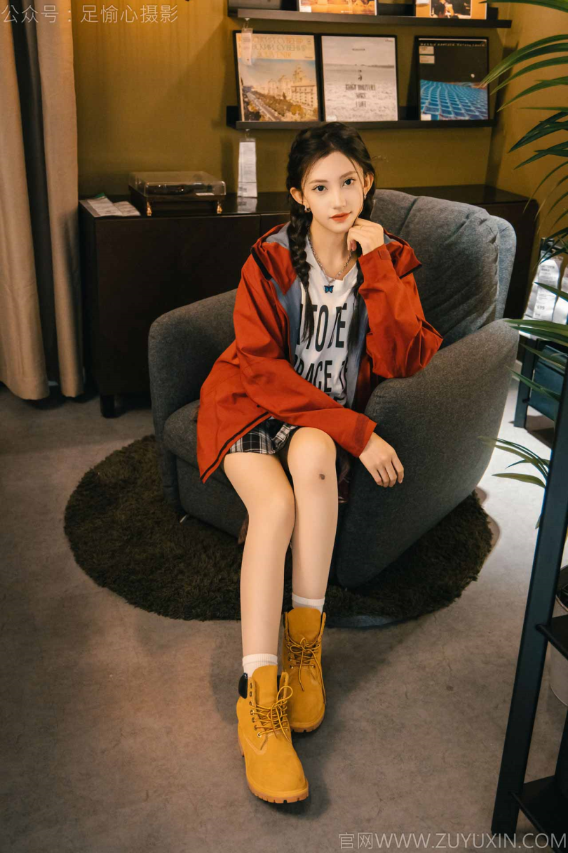 足愉心摄影第15期:模特可乐(搭配:红色夹克、白T、短裙、马丁靴、肉丝色袜、白棉袜)