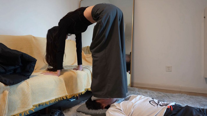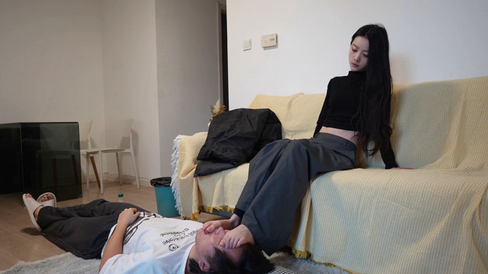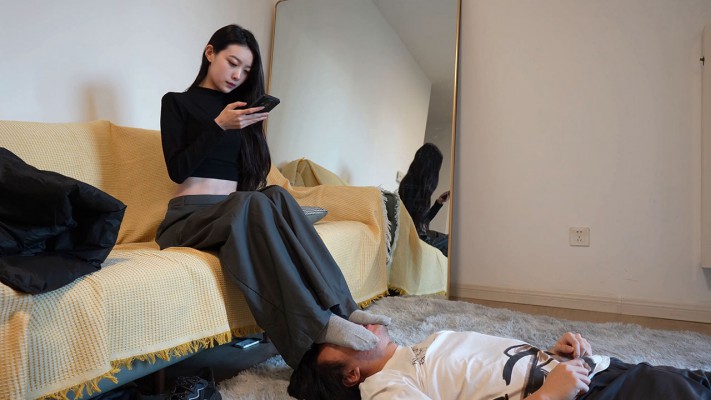 素人美女青禾初次脚耳光调教脚奴,被脚奴侍奉清理脚底,脚深喉,全体重踩脸。