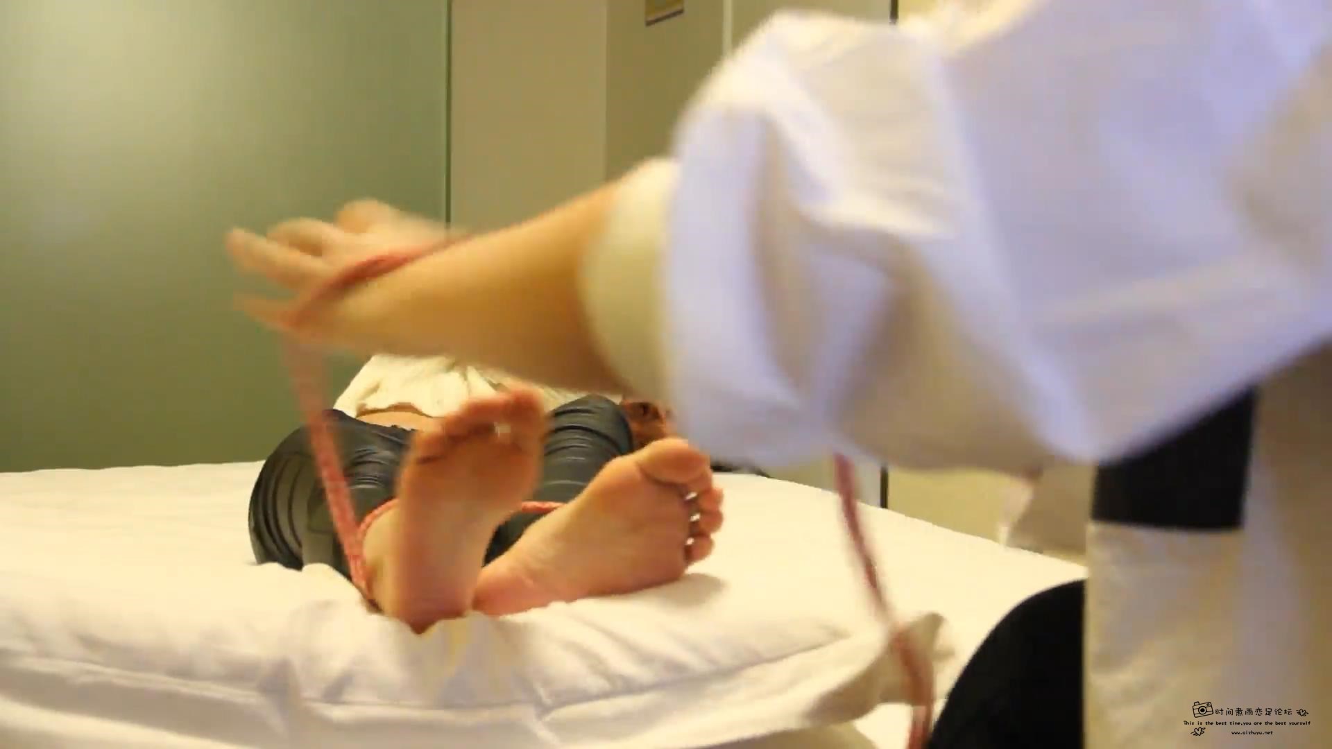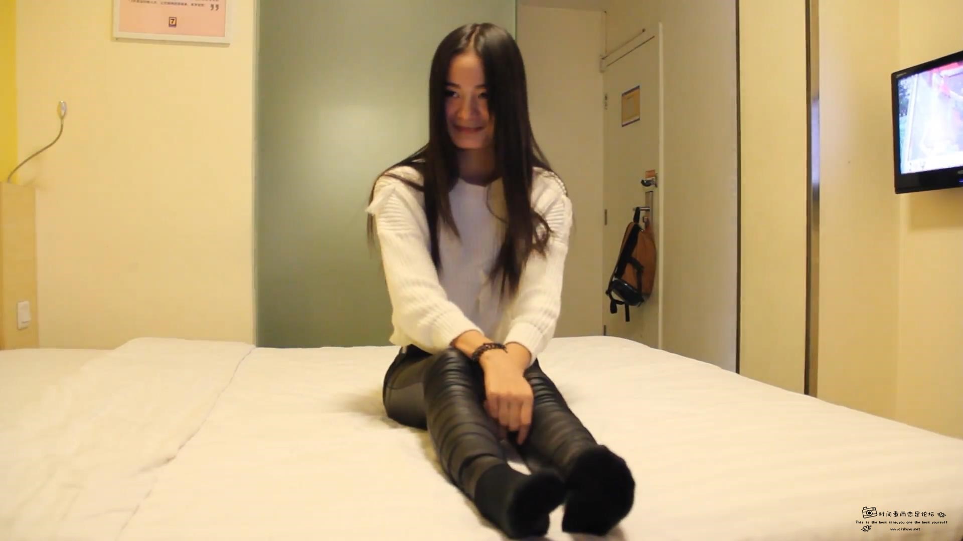 【TheaQueen】像迪丽热巴的妍妍酒店皮裤,黑棉袜,裸足TK,初T还有点小娇羞,全程高能,最后捆绑T脚,35分钟