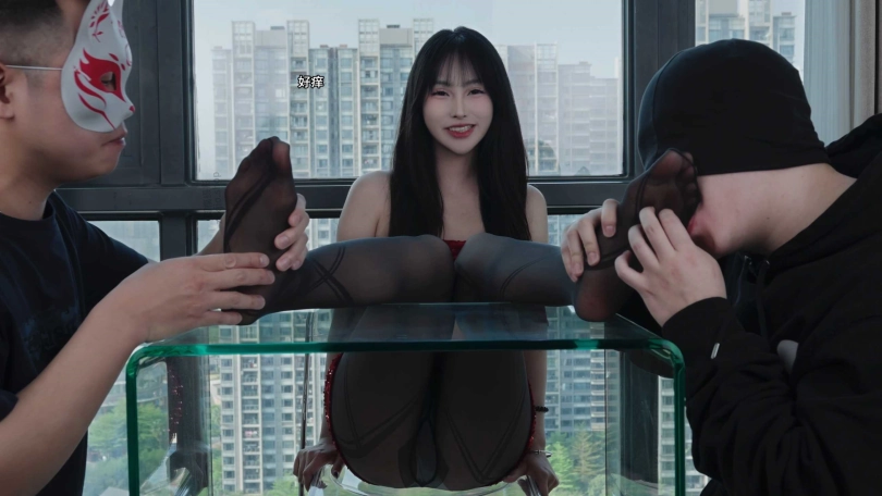 【脚模摄影】129广州唐嫣涞觅黑绷带丝袜长靴双男主闻舔