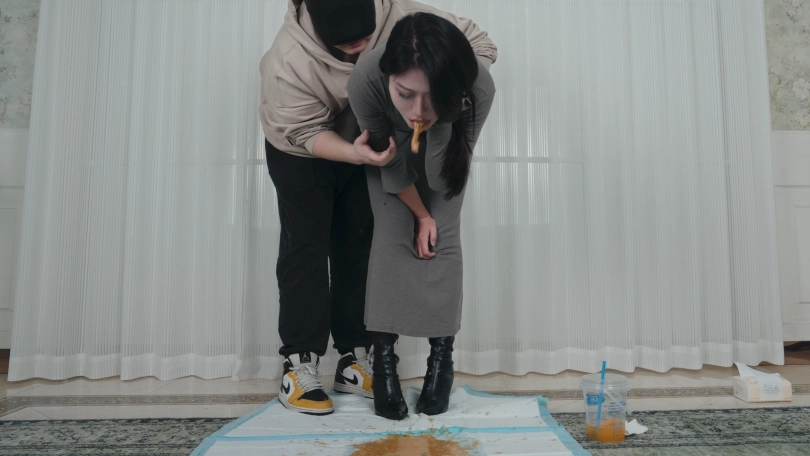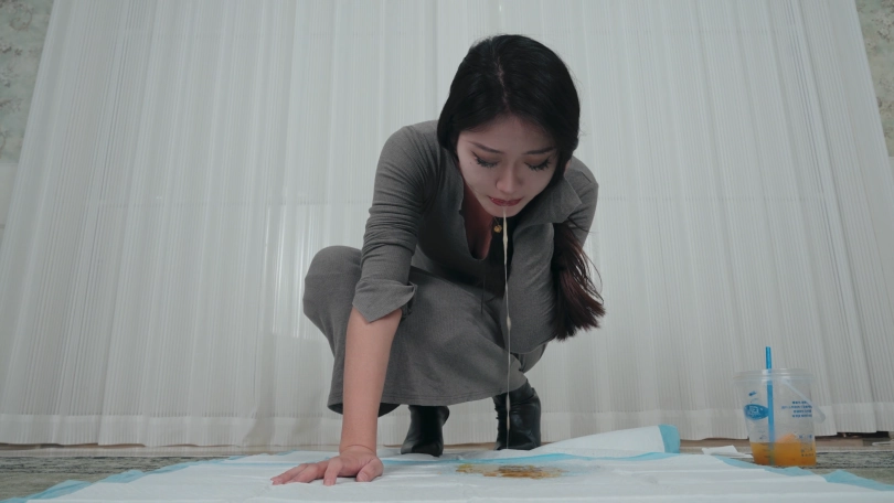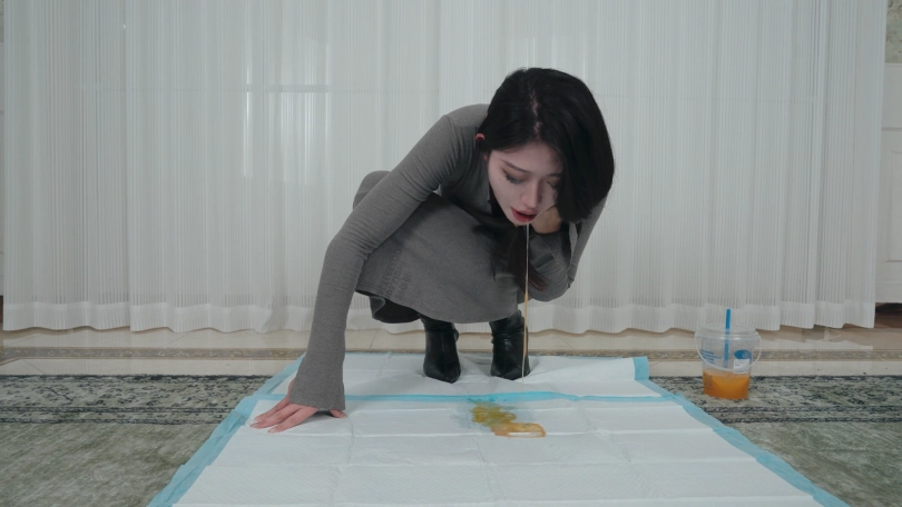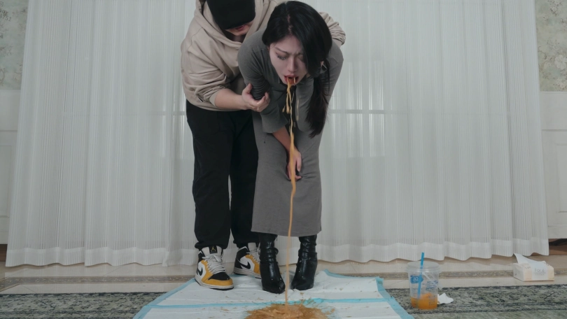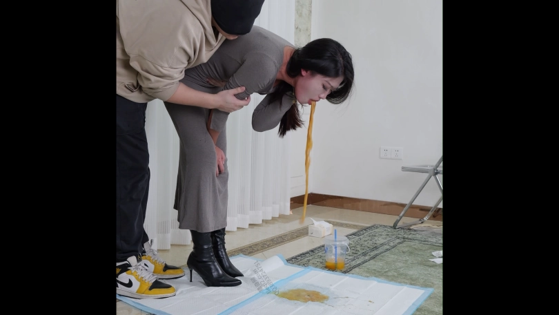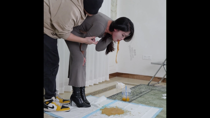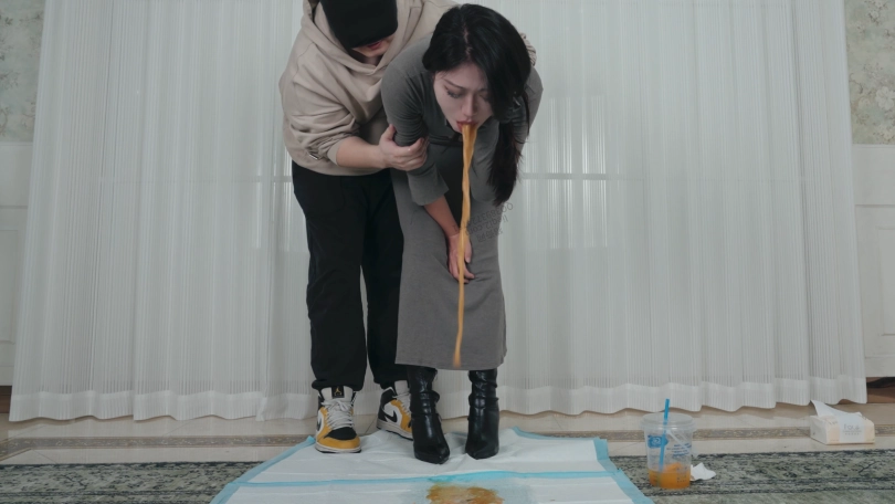 剧情;丝丝是个车展模特,今天刚刚参加完展会就来赴约。今天穿的长靴小码裙,很修身,把身材曲线凸显出来。她开车带我去了宵夜档,买了一大袋宵夜说约我喝点。我们回家后丝丝开始暴风吸入,吃的小肚子鼓了起来。随后买的鸡尾酒到了,两杯20度,一杯7度,一共三升鸡尾酒。很快就不胜酒力脸和身子开始发红。她说她快要吐了,于是蹲着自己吐,吐的脖子上青筋暴起,很难受但吐不出多少。我看她憋得难受,决定帮她扣。我一边按她肚子一边扣喉,我让她不要忍者声音,她发出呕吐声吐了一次又一次。最后看着满地呕吐物不敢相信吐了这么多。我掂了掂,呕吐物有三斤。呕吐时长双机位约20分钟。
