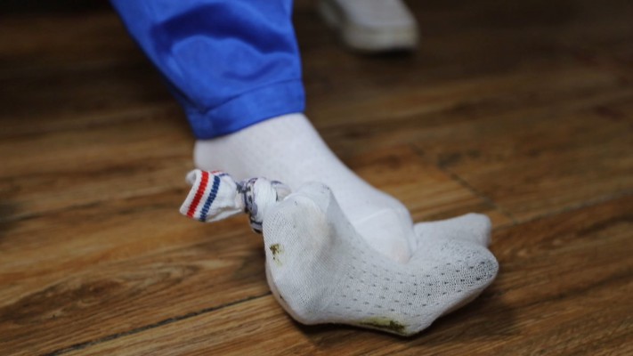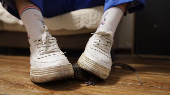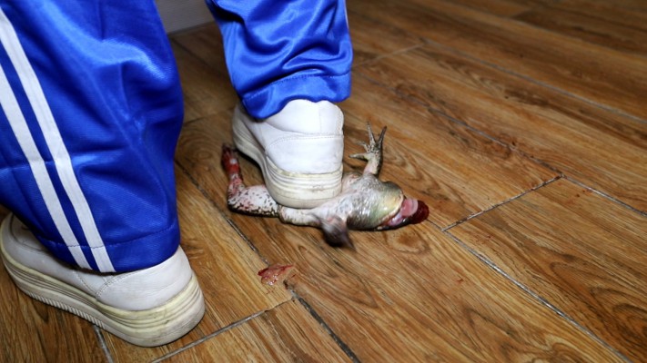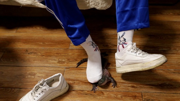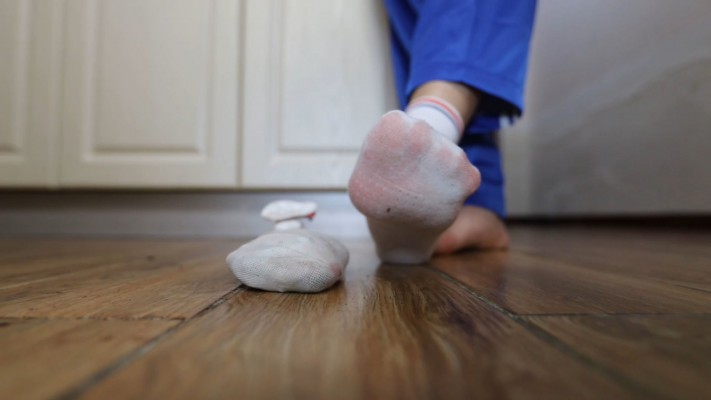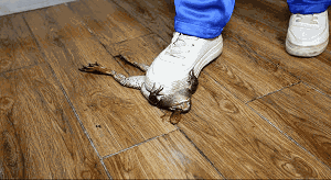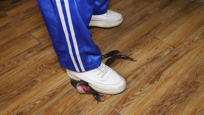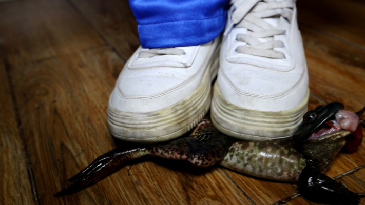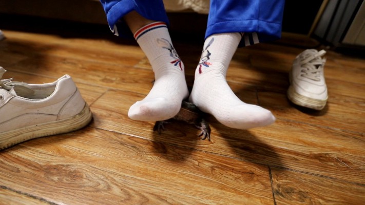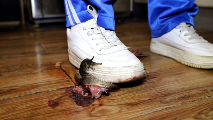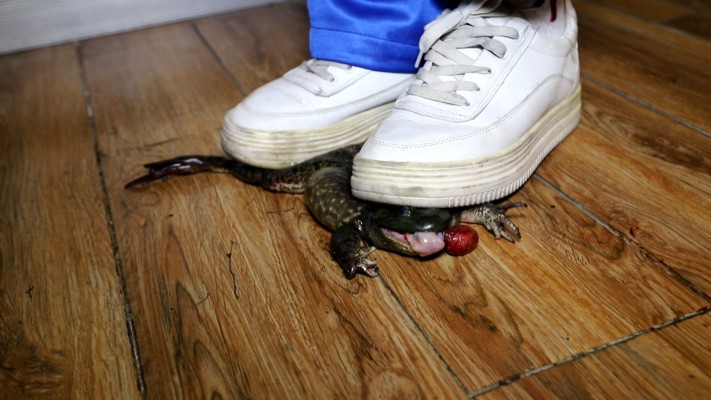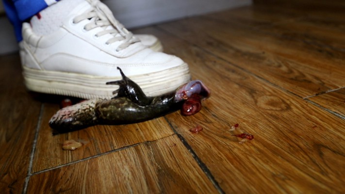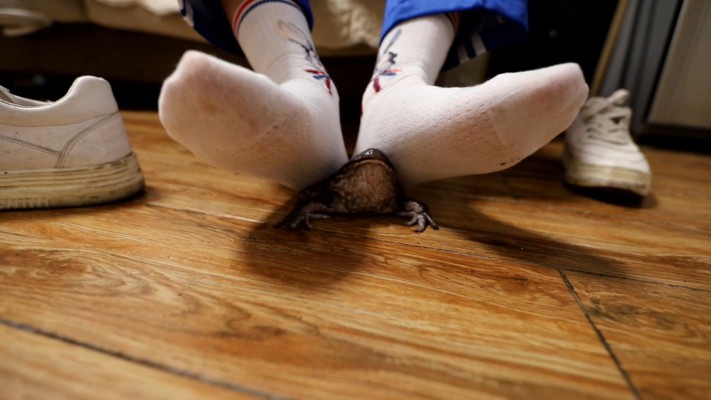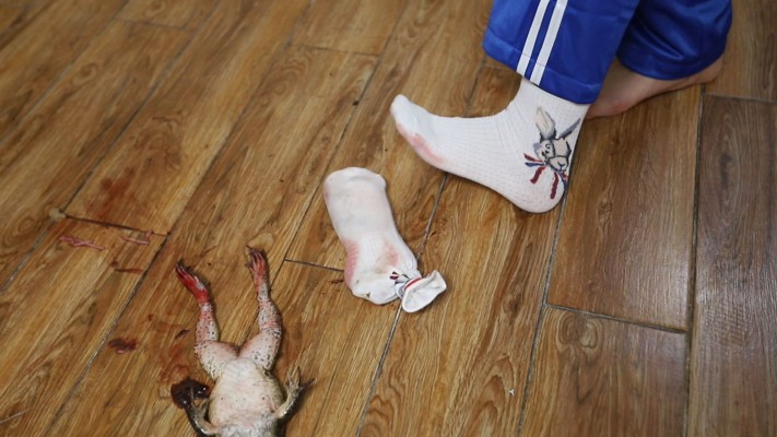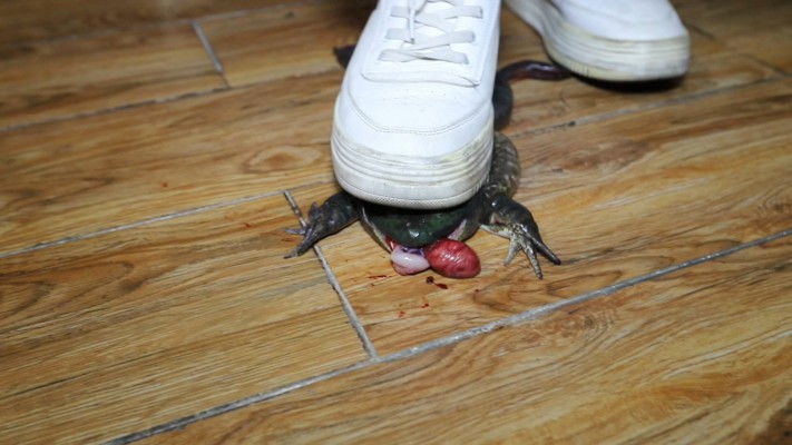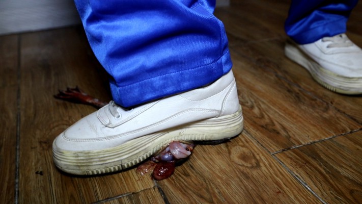 傻白甜女生栗子穿着体育课的臭臭小白鞋穿鞋踩死一只牛蛙,再脱鞋把一只牛蛙塞进袜子里踩到渗血内脏都踩出来啦