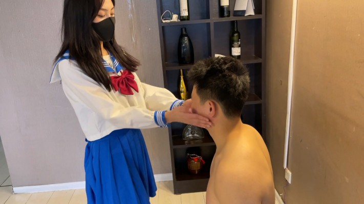 贝儿小主身穿JK校园制服,黑色口罩背后隐藏着神秘又邪恶,对男M展开暴力踢击虐腹,然后是耳光、全体重踩踏,累了便让男M为其伺候清理鞋袜,舔舐裸足,最后强制深喉后锁喉勒昏。