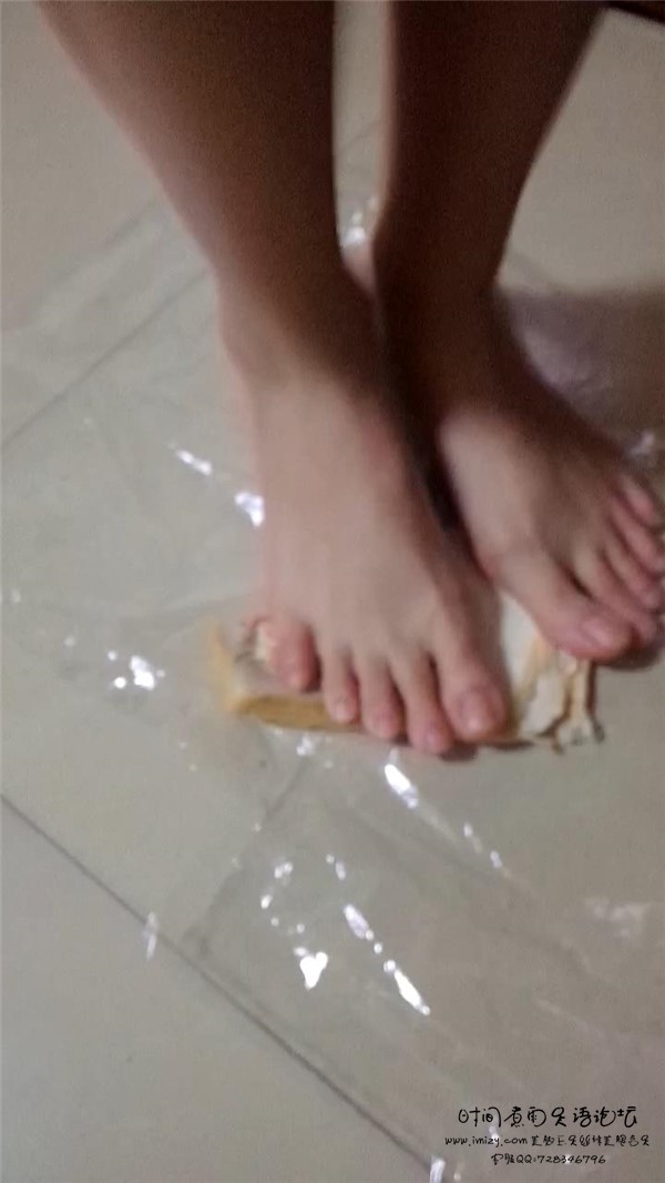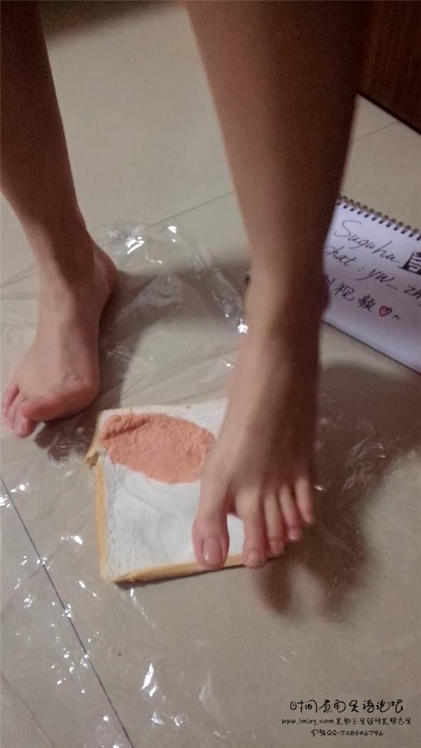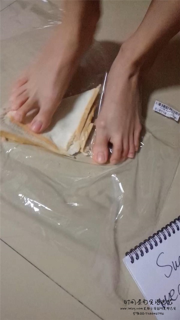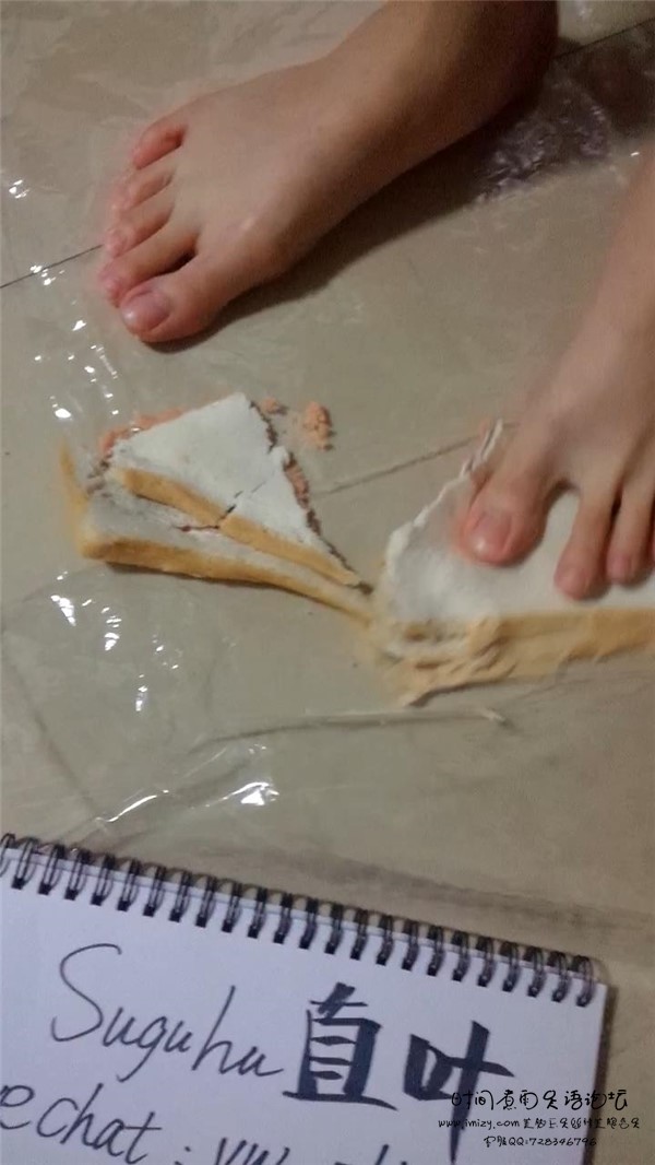 网红直叶日本萝莉学生装高筒袜小皮鞋裸足踩踏面包喂食