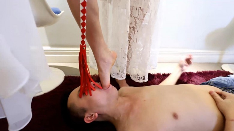 28分钟。调教的内容有很多,闻脚、鞭打、调戏刁鞭子、舔脚、口水、踩踏、蹦跳、脚插嘴、骑马