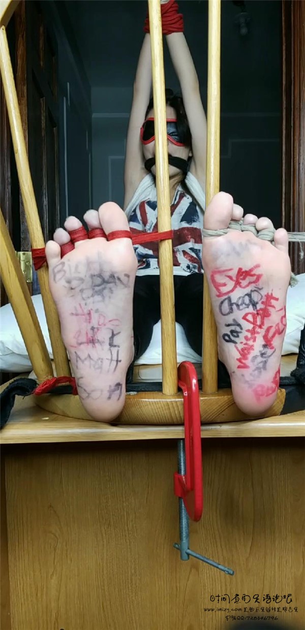可可CoCo小姐姐捆绑堵嘴绑吊脚底写字,被抽鞭子,脚底疼到喊叫,首次被导演舔脚,心疼小姐姐2秒钟
