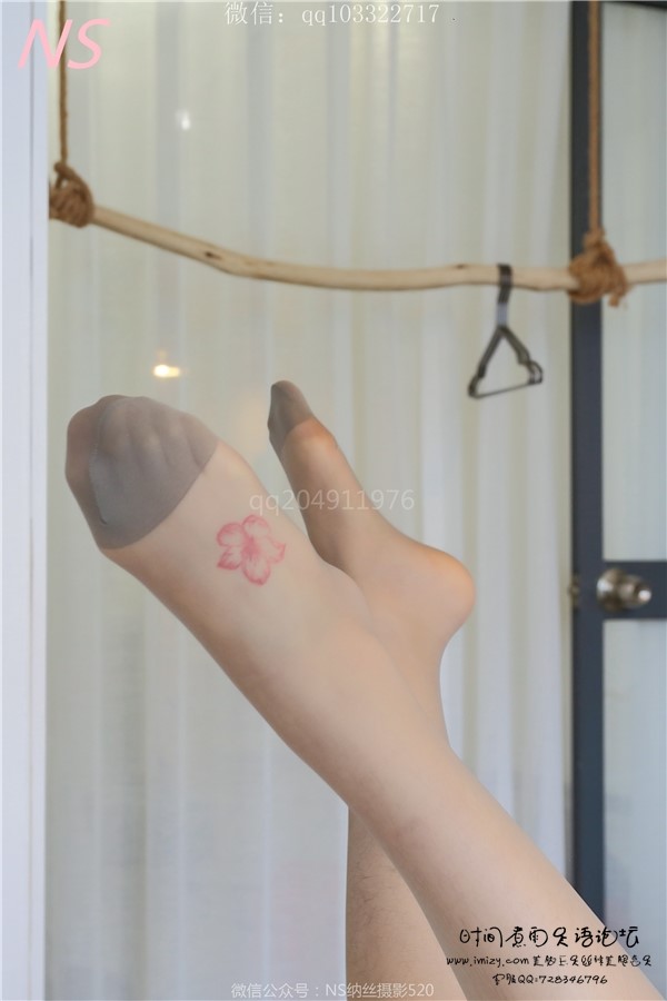 【纳丝摄影】像angelababy一样脚上纹着诱人小花的小姐姐薄透灰丝挑逗+配112张附赠套图