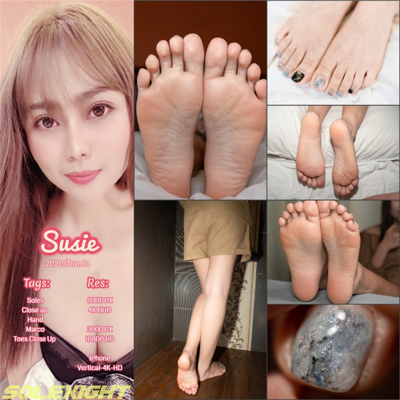 在她還沒脫下鞋子之前,其實也不知道她的腳好不好看,Susie的腳是很勻稱的24碼,腳型算是不錯的,指甲的部分Susie是說自己愛漂亮所以都會去做指甲彩繪,雖然拍攝過程中偶爾需要用英文對話,但聊下來Susie表示並不排斥拍攝腳部特寫的寫真集,本次作品非常推薦給喜歡腳底的朋友,這次一樣是使用100MBPS拍攝Vertical直式影片,個人覺得直式影片的部分特寫Susie的腳底非常好看,加上她害羞的表情,其實別有一番風味。