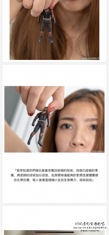 這次Ant Man (蟻人)潛入了九頭蛇特務Lucy的房間裡,試圖奪回具有縮小能力的皮姆技術,沒想到反而變成了Lucy的掌中玩物...就連前來營救的鋼鐵人也被Lucy縮小了,蟻人嘗試將自己巨大化恢復成正常尺寸...但身體卻不斷地縮小...眼看自己就要被吃下肚...結果究竟是死是活呢?