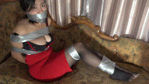jingti`s wore a gym suit and was bound by tape, which included sealing tape, bound by limbs, and struggled to get rid of TKfoot