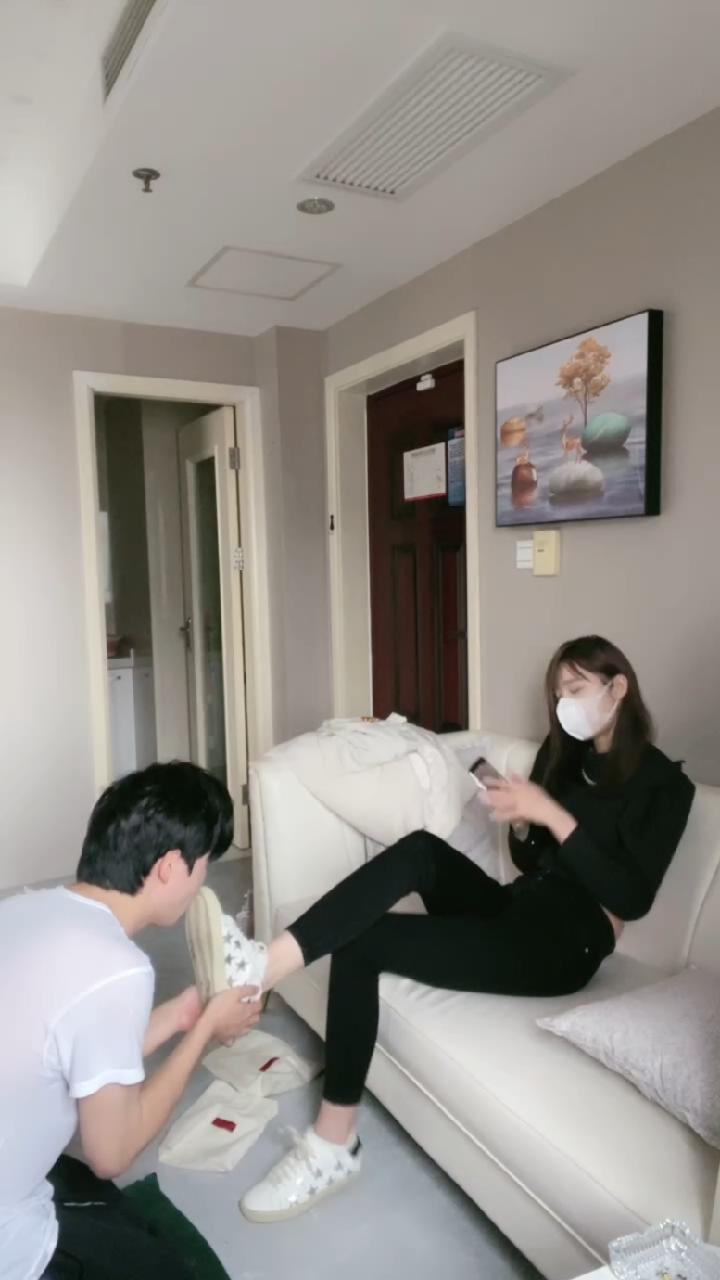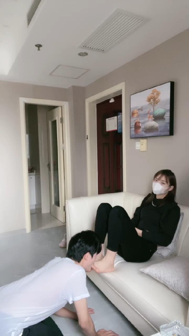 183默默s板鞋白棉袜裸足暴虐小奶狗,狠狠踢裆